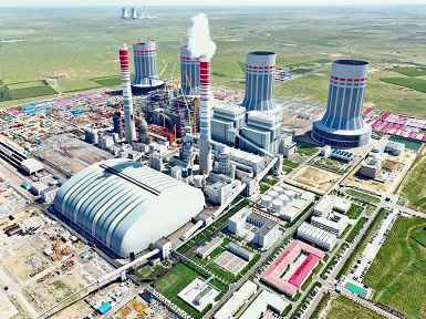 282022.09内蒙古国电电力上海庙发电公司4×1000MW燃煤机组钢结构间冷塔全部完工